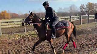 ■馬体重:430kg(先月比 ±0kg) 中間も順調にベースを上げて、ここまで15-15キャンターを5本消化。1/24の坂路2本目は、終いを重点とする後傾ラップのキャンターで、3ハロン 41.9-27.0-13.3をマーク。行きっぷり、手応えも良く、軽い扶助でスッと反応・加速し、体の使い方からもセンスの良さは十分窺えます。 飼い葉も食べて体重は変わらず推移、代謝や毛肌の艶・張りも良好です。 今後も計時・本数を重ね、ゲート練習も並行しながら、早期入厩・デビューに備えていきます。 ※本動画は2025年11月上旬撮影 ※2列目左:赤いウェア騎乗が本馬です